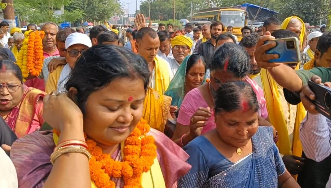 समर्थकों के काफिले के साथ पहुँचीं अर्चना चंद्र