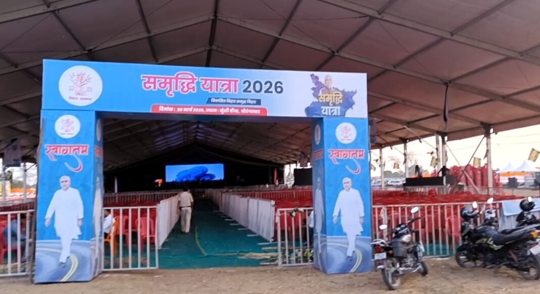 औरंगाबाद(राजेश रंजन)। जिले में बिहार के मुख्यमंत्री नीतीश कुमार की समृद्धि यात्रा को लेकर सारी तैयारियां पूरी हो गई है. औरंगाबाद जिले के बरडी खुर्द गांव के समीप इस कार्यक्रम का आयोजन किया गया है. कार्यक्रम शुक्रवार को दोपहर 1:00 बजे से आयोजित की गई है जिसमें मुख्यमंत्री नीतीश कुमार लगभग 680 करोड़ रुपये की लागत से बन रहे 262 योजनाओं का शिलान्यास और उद्घाटन करेंगे।